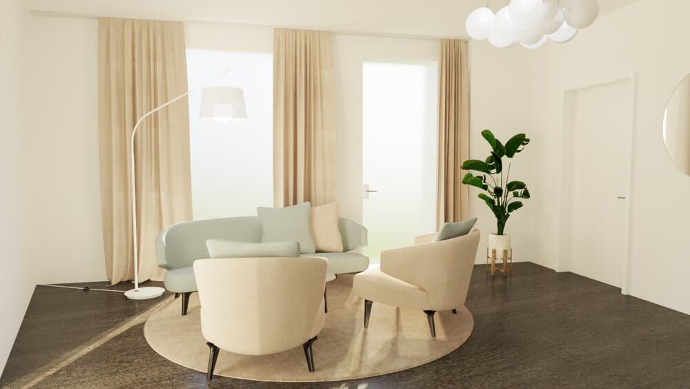 - Beim zweiten Termin präsentieren wir unseren Kunden bereits Moodboards mit entsprechenden Farb- und Materialmustern sowie eine 3-D-Planung, um es Ihnen leicht zu machen, mit allen Sinnen unser Einrichtungskonzept in Umsetzung sehen zu können.